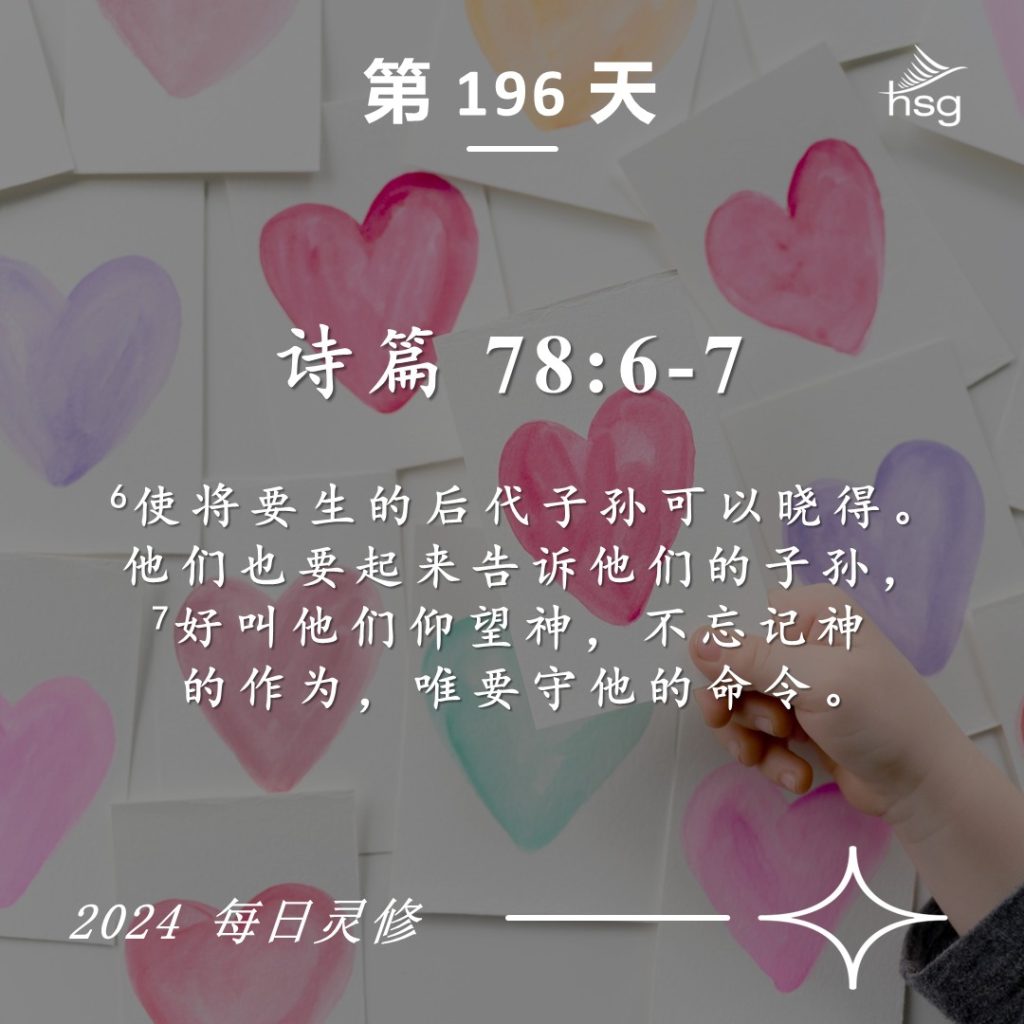 我们应该把神的知识和祂的诫命传给下一代,提醒他们把盼望寄托在神身上,不要忘记神的作为!