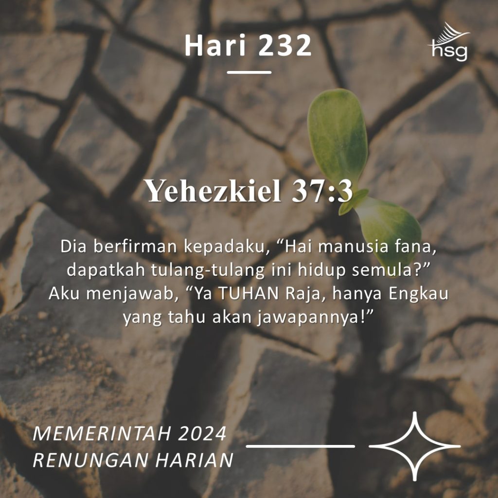 Tahap intensiti tindakan Tuhan dalam kehidupan ditentukan oleh apa yang boleh kita percayai. Apa yang anda boleh percaya adalah penting dan menentukan apa yang boleh dilakukan oleh Tuhan untuk anda. Inilah cabarannya: Tuhan boleh melakukan apa sahaja dan tidak ada yang terlalu sukar untuk Dia lakukan. Persoalannya adalah bolehkah anda percaya Dia dapat melakukan semua itu untuk anda? Dalam petikan ayat hari ini, nabi Yehezkiel dibawa ke lembah tulang-tulang kering dan kemudian ditanya oleh Tuhan, adakah tulang-tulang kering itu boleh hidup kembali? Bagaimana Yehezkiel menjawab menentukan apa yang berlaku seterusnya. Dengan cara yang sama, senario lembah tulang-tulang kering ini diulang setiap hari dengan situasi, laporan negatif, kelemahan, ribut dan halangan yang kelihatan seperti pengakhiran jalan. Atau adakah ia begitu? Seperti Yehezkiel, bolehkah anda percaya Tuhan melakukan perkara yang mustahil untuk anda?