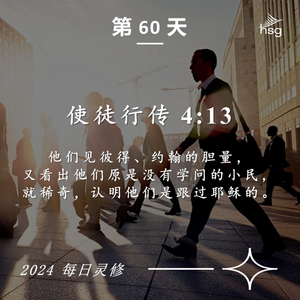 当我们与耶稣同行时,我们就会变成一个不同的人。这也是发生在早期门徒身上的事情。他们身上的戏剧性转变之一,就是他们勇敢地为耶稣作见证。它是如此突出,以至于人们看到了他们的勇气,并注意到他们一直与耶稣同在。为基督作见证的胆量和勇气清楚地表明一个人与耶稣同行。当基督在你的生命中是真实的时候,任何人都很难保持沉默,不大胆地谈论他。因此,在基督的见证中,那些最接近基督的人是最勇敢的,而那些最远的人是最安静的!你在基督见证中的胆量和勇气是衡量你与基督关系的一个很好的标准。