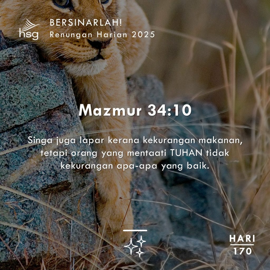 Singa, walaupun mempunyai kemahiran memburu yang hebat, mungkin tidak selalu berhasil menangkap mangsanya dan menjadi lapar dan lemah. Sebaliknya, mereka yang berpaling mencari Tuhan tidak akan kekurangan sesuatu yang baik! Ayat ini meyakinkan kita bahawa pencarian kita kepada Tuhan tidak akan sia-sia. Ia pasti akan membuahkan hasil. Ia adalah satu keistimewaan dan hak yang diberikan kepada mereka yang menjadi milik Tuhan. Apa yang kurang dalam hidup anda? Apakah keperluan anda? Kunci yang membuka bekalan keperluan dari Tuhan adalah mencari Dia dalam doa. Ironinya, mencari Tuhan adalah perkara mudah yang menghasilkan keuntungan besar, namun ramai yang tidak melakukannya!
