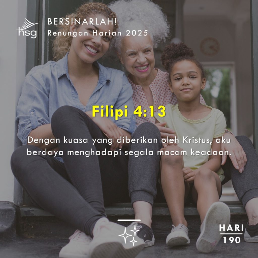 Sebagai anak Tuhan, kita diberi kuasa dan disokong secara luarbiasa untuk hidup sebagai saksi dan pekerja Kerajaan Tuhan. Tuhan tahu kita memerlukan bantuan untuk memenuhi panggilan itu. Oleh itu, Dia sentiasa bekerja dengan dan melalui kita untuk melaksanakannya. Apa yang harus kita lakukan adalah menerima, mengenal pasti, dan meningkatkan iman, mengetahui bahawa Dia bekerja bersama-sama dengan kita. Kita tidak boleh takut atau menghindarkan diri daripada tanggungjawab atau peluang yang diberikan Tuhan. Sebaliknya, kita juga harus mengisytiharkan ayat hari ini, , “ Segala perkara dapat kutanggung di dalam Dia yang memberi kekuatan kepadaku!”