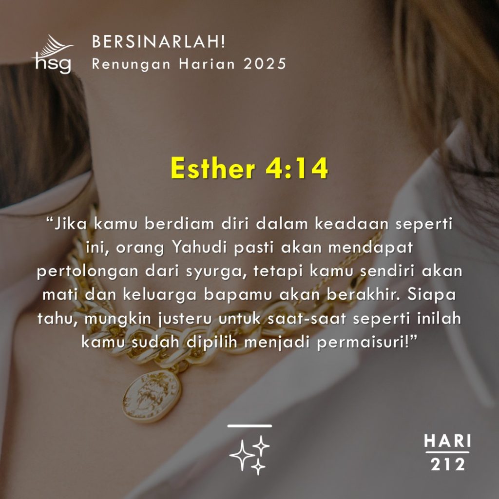 Lihatlah diri anda sebagai sebahagian daripada rancangan dan tujuan Tuhan, dan melangkahlah dengan iman “untuk masa seperti ini!”