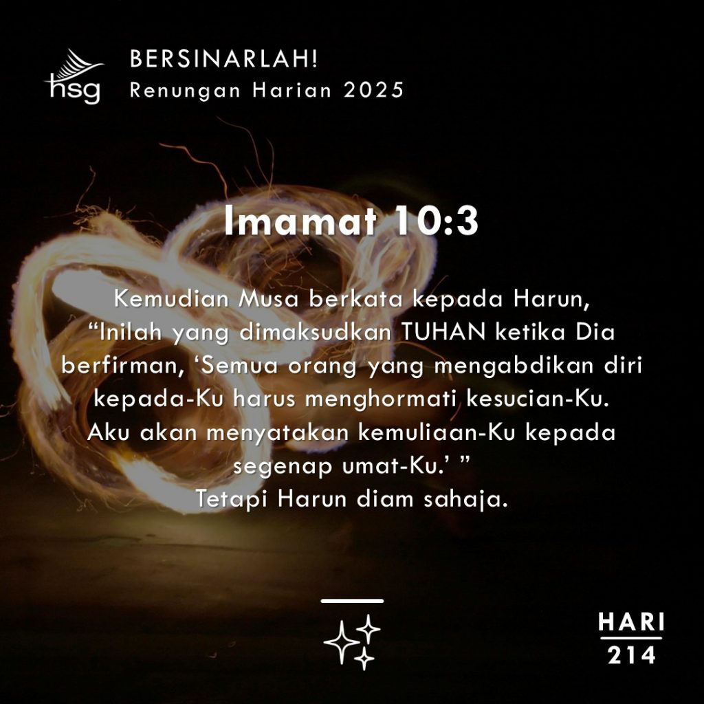 Anak-anak lelaki Harun, Nadab dan Abihu, mempersembahkan api “asing” kepada Tuhan – yang bermaksud tidak suci dalam bahasa Ibrani. Mereka mendekati Tuhan dengan cara yang sangat tidak menghormati dan tidak suci. Oleh kerana itu, Tuhan menghakimi mereka.