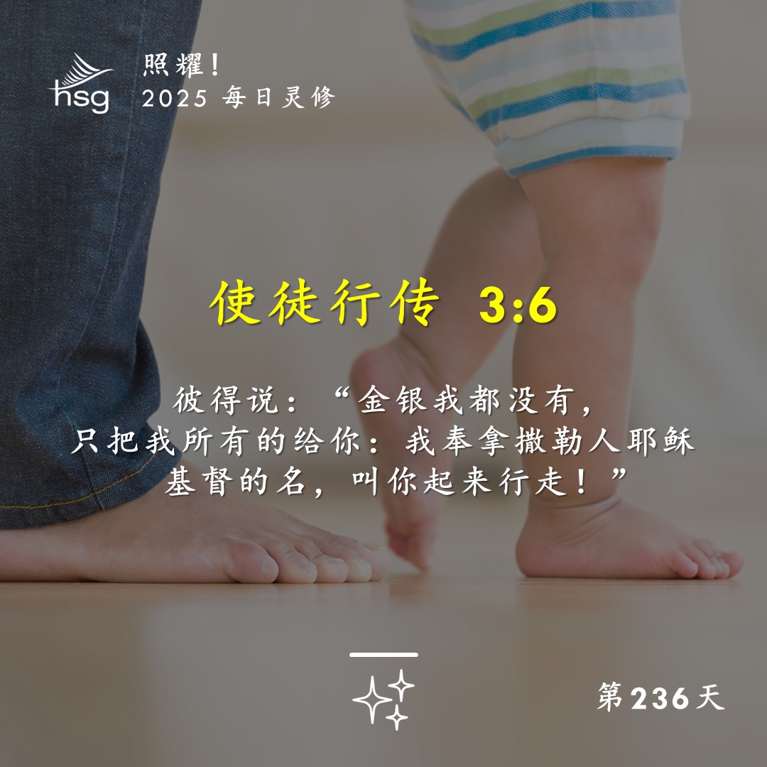 这个从出生起就瘸腿的人期待着其他人每天都给他的金银。但彼得给了他一些别人没有给过的东西——对耶稣名的信心和从中来的能力!在使徒行传 3:16 的后面,它说是对耶稣名的信心完全治愈了他。