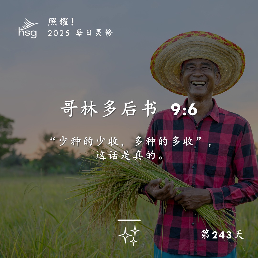 今天,找到一个你可以慷慨播种的地方——在言语、行为或财务上——让你的光芒在别人面前闪耀!