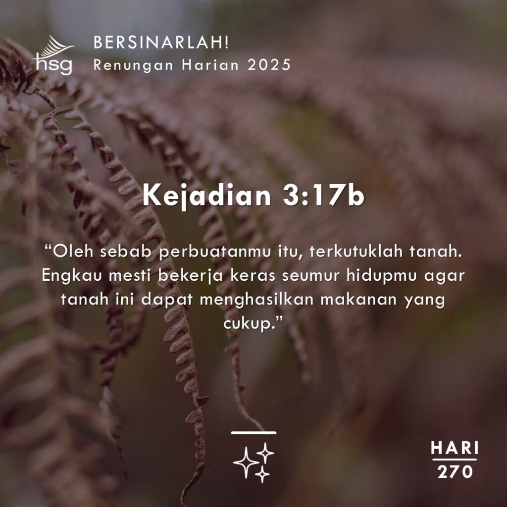 Inilah yang difirmankan Tuhan kepada Adam setelah dia dan Hawa berdosa. Daripada menjalani DNA Tuhan secara semulajadi di dalam dirinya, Adam kini terpaksa berusaha untuk berbuah dan berlipat kali ganda. Dosa menyebabkan mutasi dalam DNA yang Tuhan lipatgandakan kepada manusia. Ia menyelewengkan apa yang pada mulanya Tuhan kehendaki  ada secara semula jadi bagi kita, menjadi kepada susah payah.