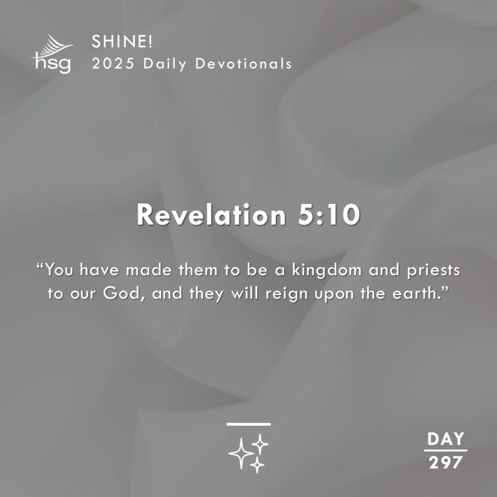 This verse isn’t just a promise for the distant future. We have the dual identity of being royal and priestly right now in Christ. As a royal member of God’s kingdom, we are an heir with King Jesus who has ultimate authority. We serve a victorious Lord. We don’t have to live in fear or defeat.
