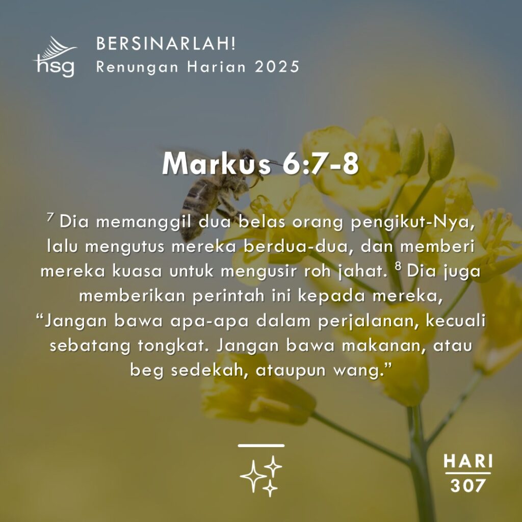 Dalam cerita ini, Yesus memberi kuasa kepada murid-murid untuk mengusir roh jahat sebelum Dia mengutus mereka. Dia juga berpesan agar mereka tidak membawa apa-apa barang berharga kerana Tuhan akan menyediakannya sepanjang perjalanan. Dia mengajar mereka untuk bergantung kepada-Nya dan bukan pemahaman semula jadi mereka. Di sini kita dapat melihat karakter Tuhan sebagai perancang dan penyedia yang terperinci. Siapa pun yang Dia panggil; Dia juga akan perlengkapi dan menyediakan dengan cara yang paling rumit sehingga semua keperluan dipenuhi. Inilah sebabnya mengapa kita boleh melangkah dengan berani dalam ketaatan setiap kali Tuhan berbicara dan mengutus kita.