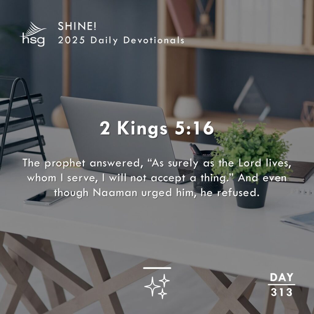 Elisha was very careful to not take the glory for Naaman’s healing from leprosy. And after he refused to receive a gift from Naaman, Naaman also made sure he did the right thing. He pledged allegiance to the Lord. He vowed to never again make burnt offerings and sacrifices to any other god but Him.