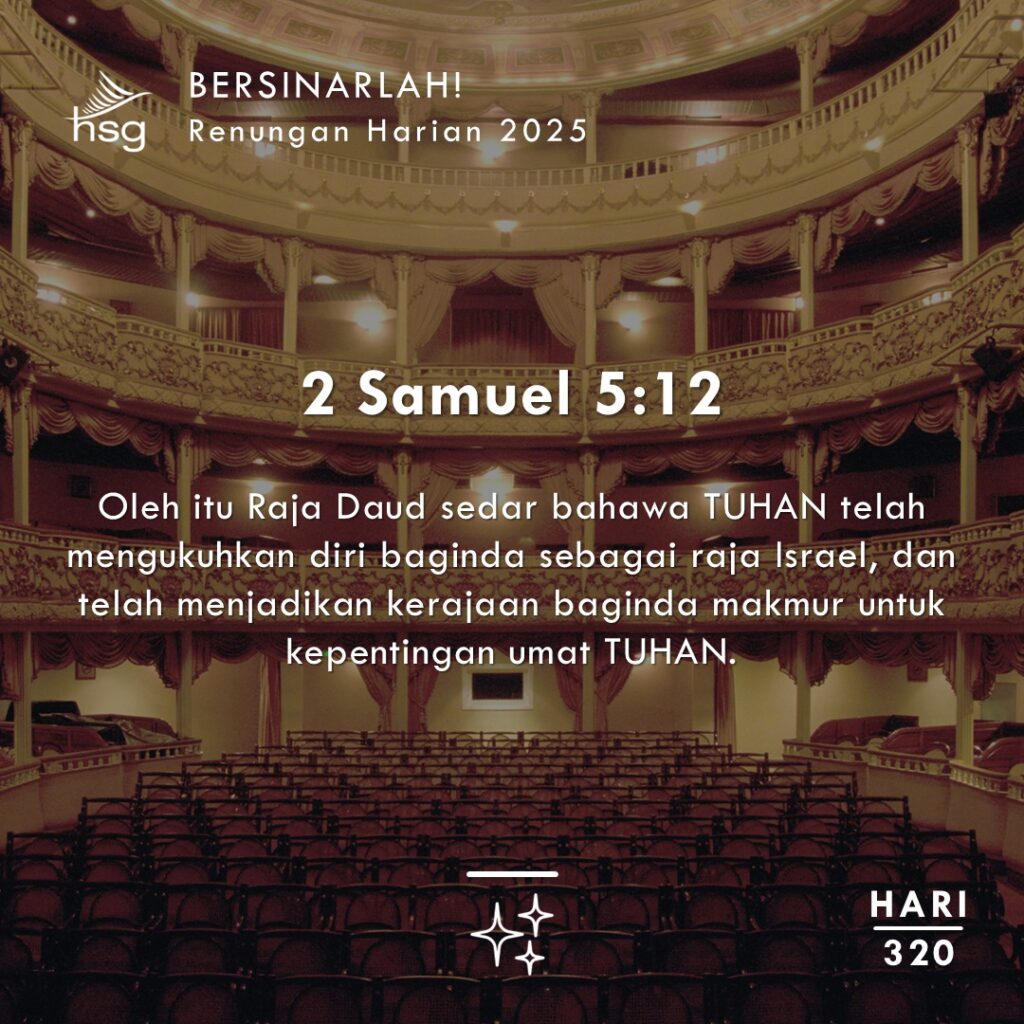 Daud menyedari sebab dan tujuan Tuhan mengangkatnya menjadi Raja atas Israel adalah demi umat-Nya. Disebabkan kesedaran, kerendahan hati, dan ketaatan terhadap rancangan dan tujuan Tuhan inilah yang menjadikan Daud begitu disukai oleh-Nya. Dengan cara yang sama, apabila kita menyedari berkat dan panggilan Tuhan dalam hidup kita adalah untuk mengendali dan memajukan Kerajaan-Nya, Tuhan akan dapat mempercayakan kita dengan banyak perkara. Mengejar kehendak, rancangan, dan tujuan Tuhan adalah kunci untuk membuka potensi kita sepenuhnya untuk kehidupan yang Tuhan boleh berikan kepada kita!